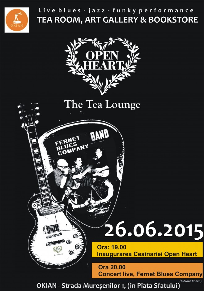 Vineri, 26 iunie, ora 19.00, Ceainăria Open Heart, Librăria Okian şi trupa Fernet Blues Company vă invită să fiţi prezenţi la inaugurarea Ceainăriei Open Heart din Okian (Str. Mureşenilor, nr. 1).
