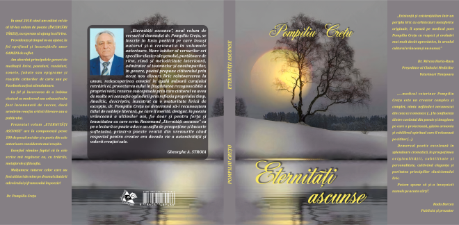 Noul volum, „Eternități ascunse”, adună, pe de o parte, o poezie cronologic nouă, dar și o selecție de poezii apărute deja în celelalte volume, autorul așezând în mâinile noastre un prețios dar de suflet, un memento personal și un impresionant pastel, specie literară de care autorul este atașat temperamental și compozițional.