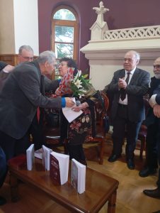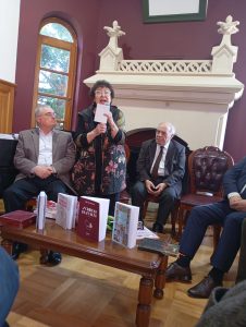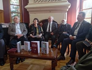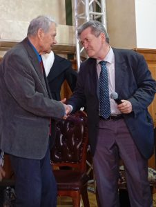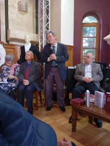 Am avut șansa să stau în primele rânduri ca să pot face câteva poze la fiecare luare de cuvânt. Lângă mine s-a așezat și decanul de vârstă al scriitorilor prof. Aurel Anghel (88 ani), pe care îl cunosc de când preda, în tinerețea sa, limba rusă la liceului unde fusesem repartizată în 1975.