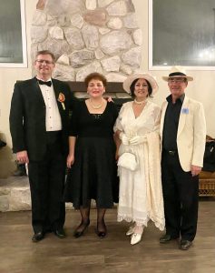 Machiajele fac minuni, așa că nu avea de ce să se teamă că îi voi colora cu creion negru dermatograf perciunii, îi voi lipi mustață neagră și îi voi acoperi capul cu joben. Pentru mine aveam deja în dulap o rochie de tafta bleumarin și o pălărie cu voaletă albastră, ca o Veronica Micle veritabilă. Am repetat asiduu și prima scenetă a fost un succes. Duminica următoare ne-am prezentat cu aceeași scenetă la Festivalul Eminescu, la sala Banatul din Kitchener, director fiind Părintele și poetul Dumitru Ichim.